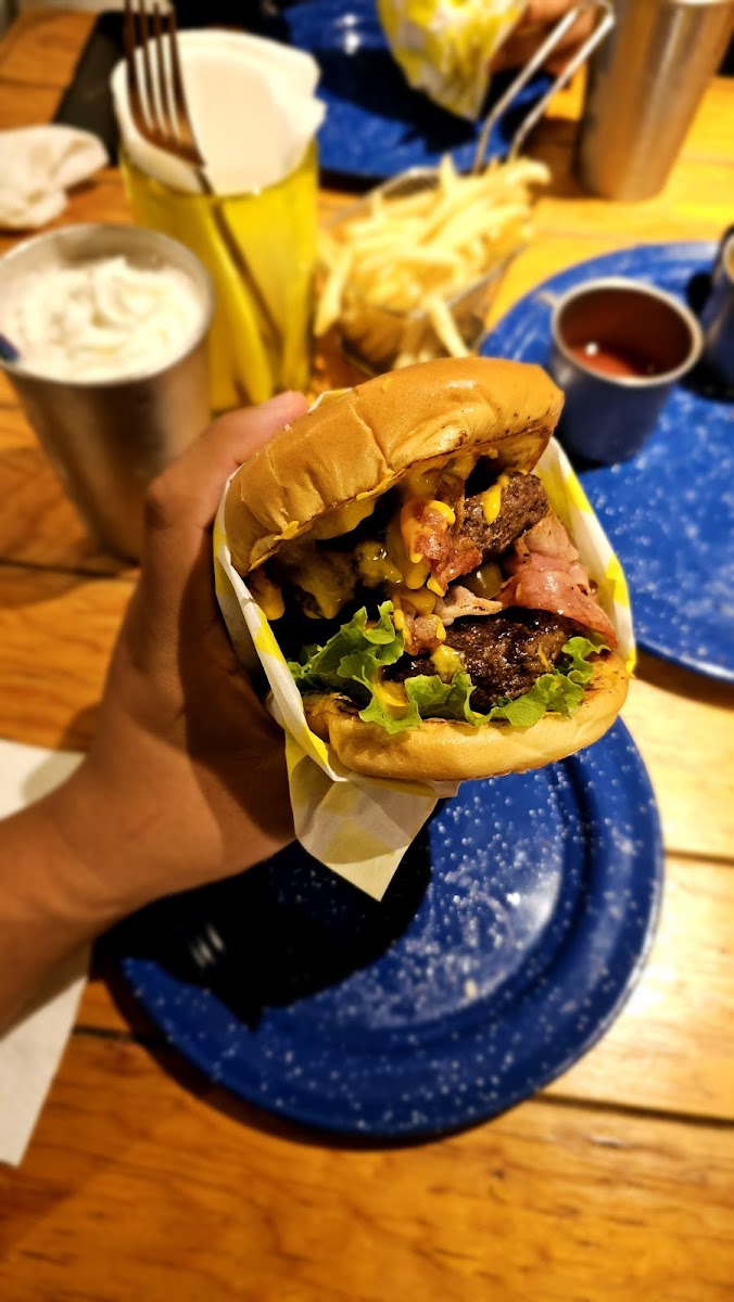 Vaya sorpresa que nos llevamos al entrar al fondo del lugar. Un espacio abierto y muy chulo, amplio, para pasar en familia. Probamos malteadas de fresa y chocolate, ambas buenas. No somos fan de consumir azúcar, así que no me detengo a hablar más. Probamos hamburguesas, qué son su especialidad, y si, están muy buenas. Calidad y precio. Buena presentación. Con las hamburguesas vienen papas a la francesa. Tienen buena presentación, pero, se enfriaron. Yo las prefiero más gruesas, están bien condimentadas, pero las prefiero más gruesas, y se enfriaron muy rápido. El servicio, bien. El ambiente genial. Musica, decoración, el lugar amplio y lo mejor de todo es que es Pet Friendly. Llevamos a los perrijos, para nosotros ellos son importantes y fue genial compartir con ellos. Lo recomiendo.